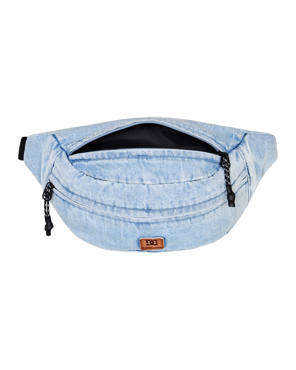 DC Patch It Hip Sack — A vintage-inspired hip sack crafted from 100% cotton with a washed denim effect. Two main zip compartments keep essentials organized, finished with a bold DC logo at the front.